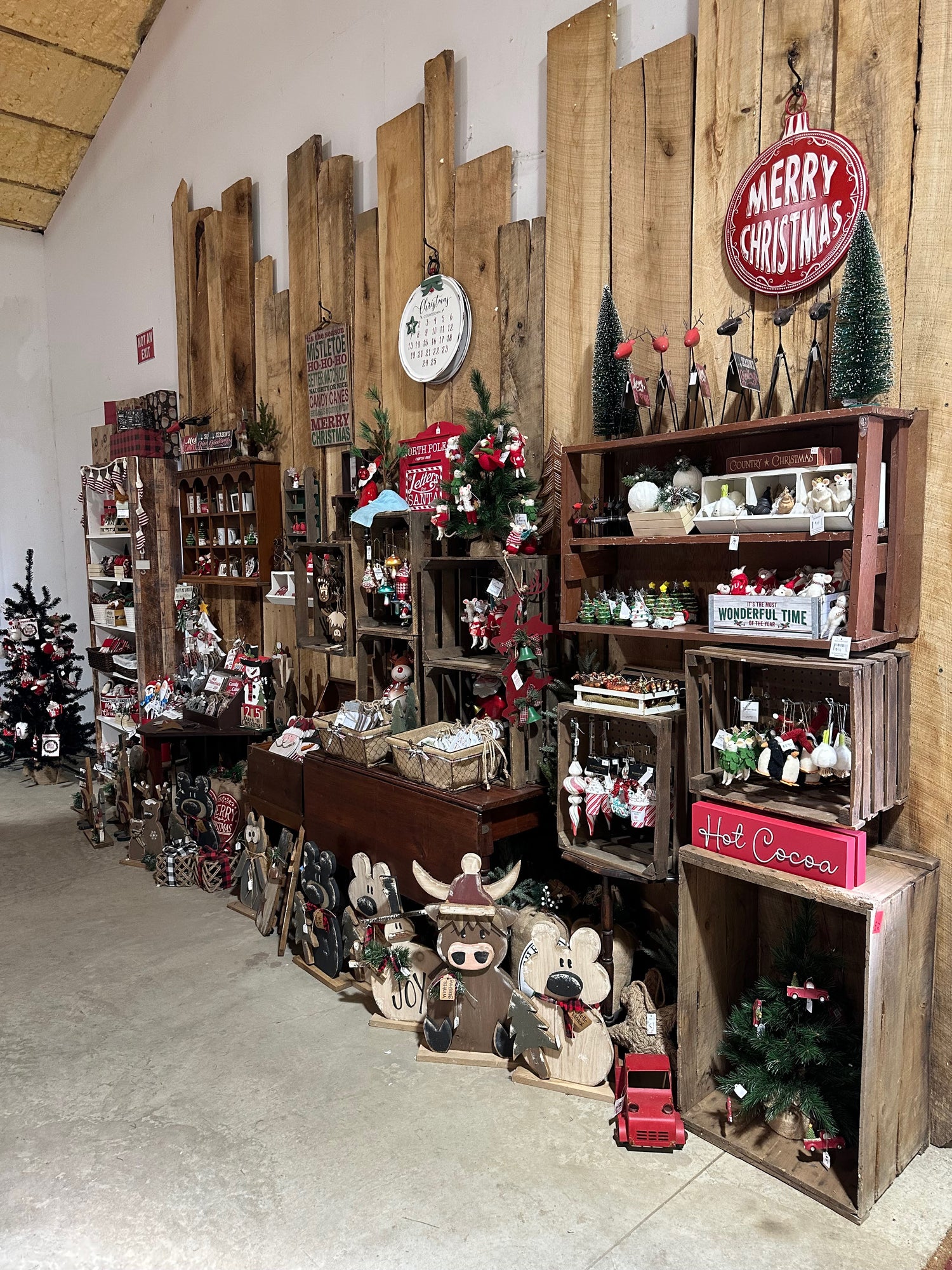 The gift shop includes themed trees: Holly Jolly Santa, Rustic Woodland, Candy Land, Glamorous Gold, and Winter Wonderland. Decorating is made simple with our theme trees, as all ornaments on the trees are available for purchase. There is also a large selection of handmade wood burned ornaments, which can be a unique holiday gift. T-shirts, crewneck sweatshirts, and other farm apparel items are available in a variety of sizes.